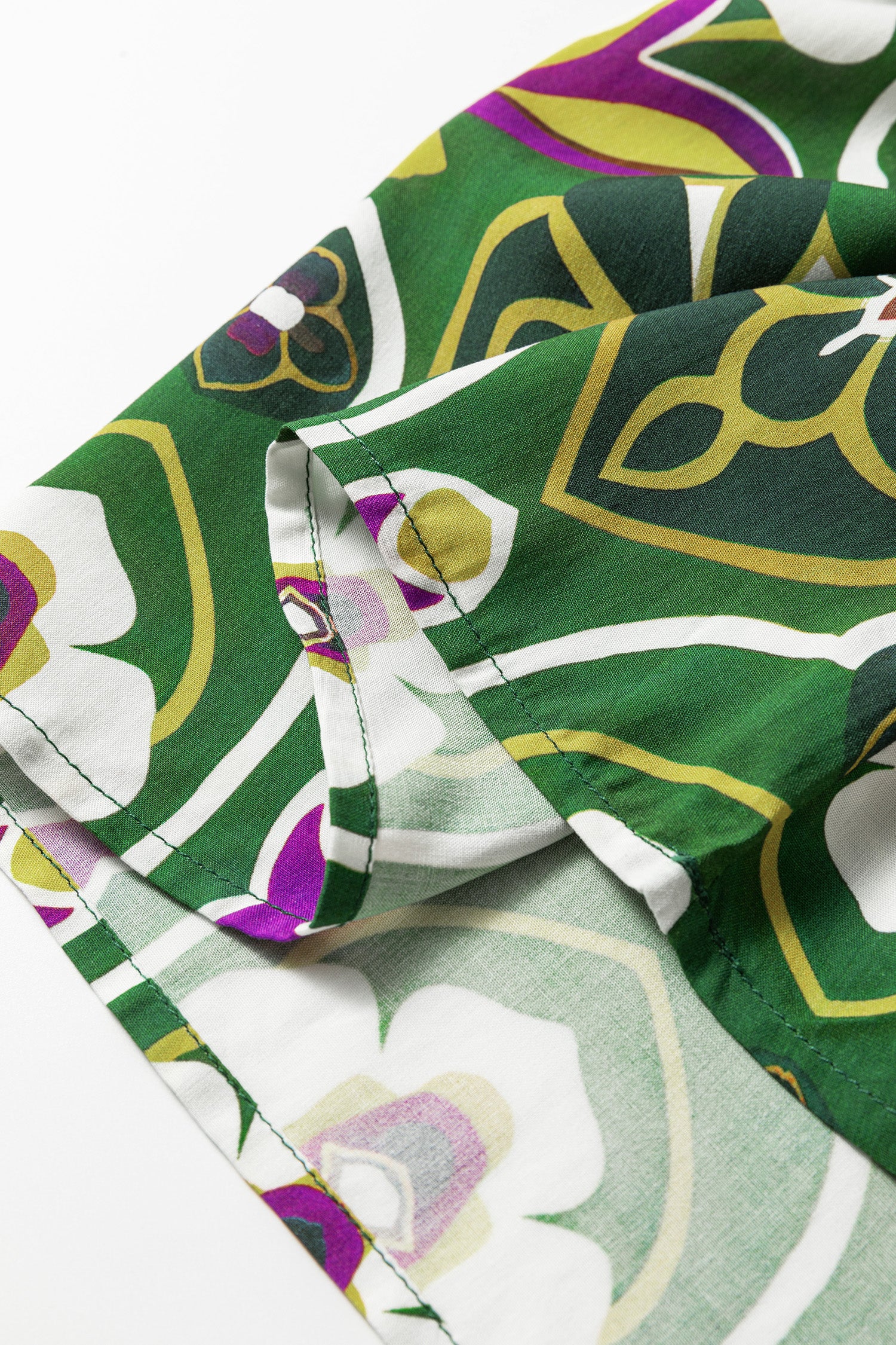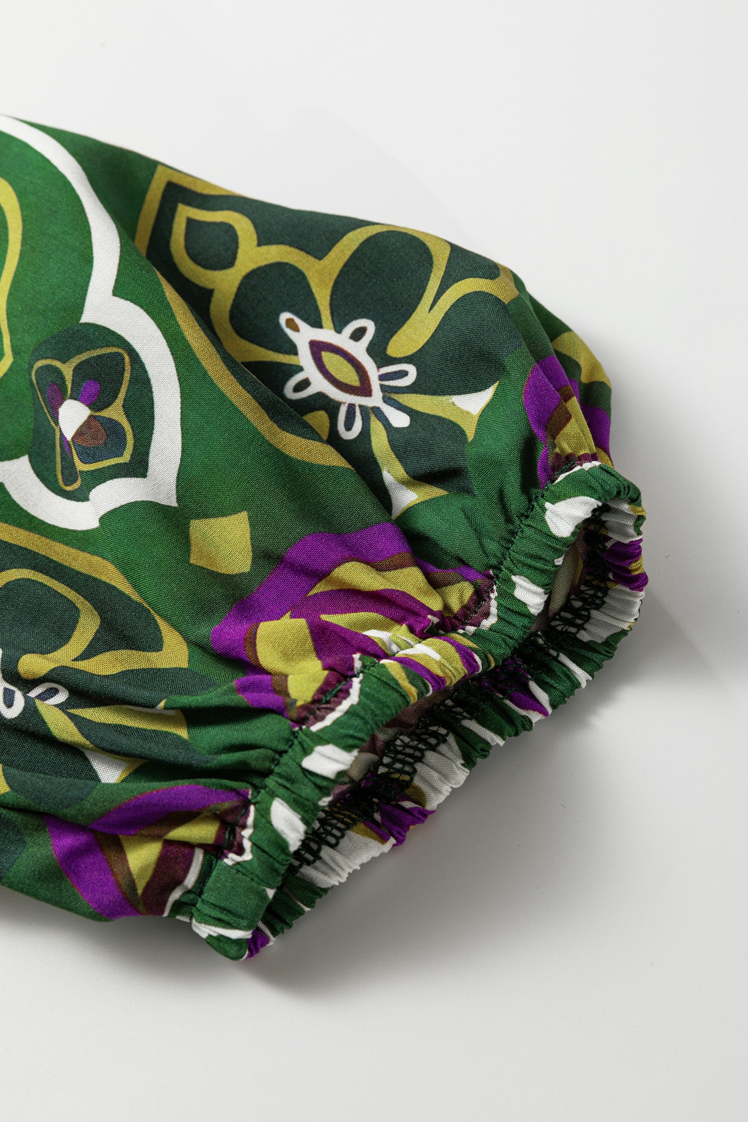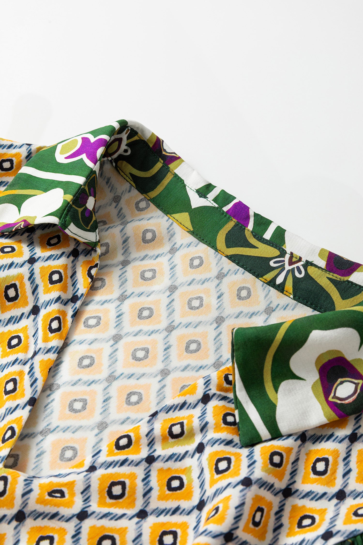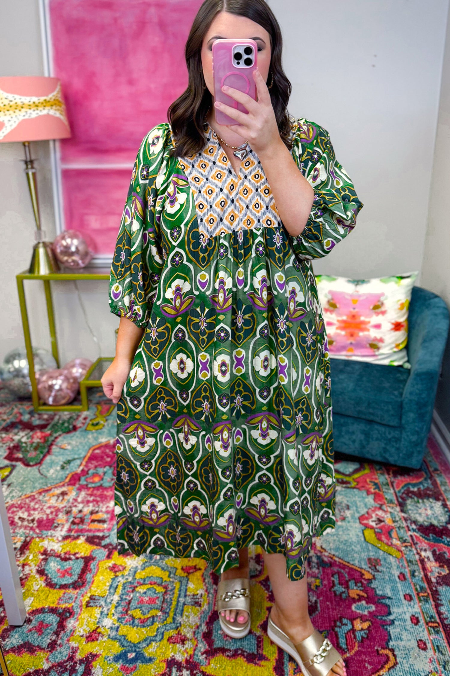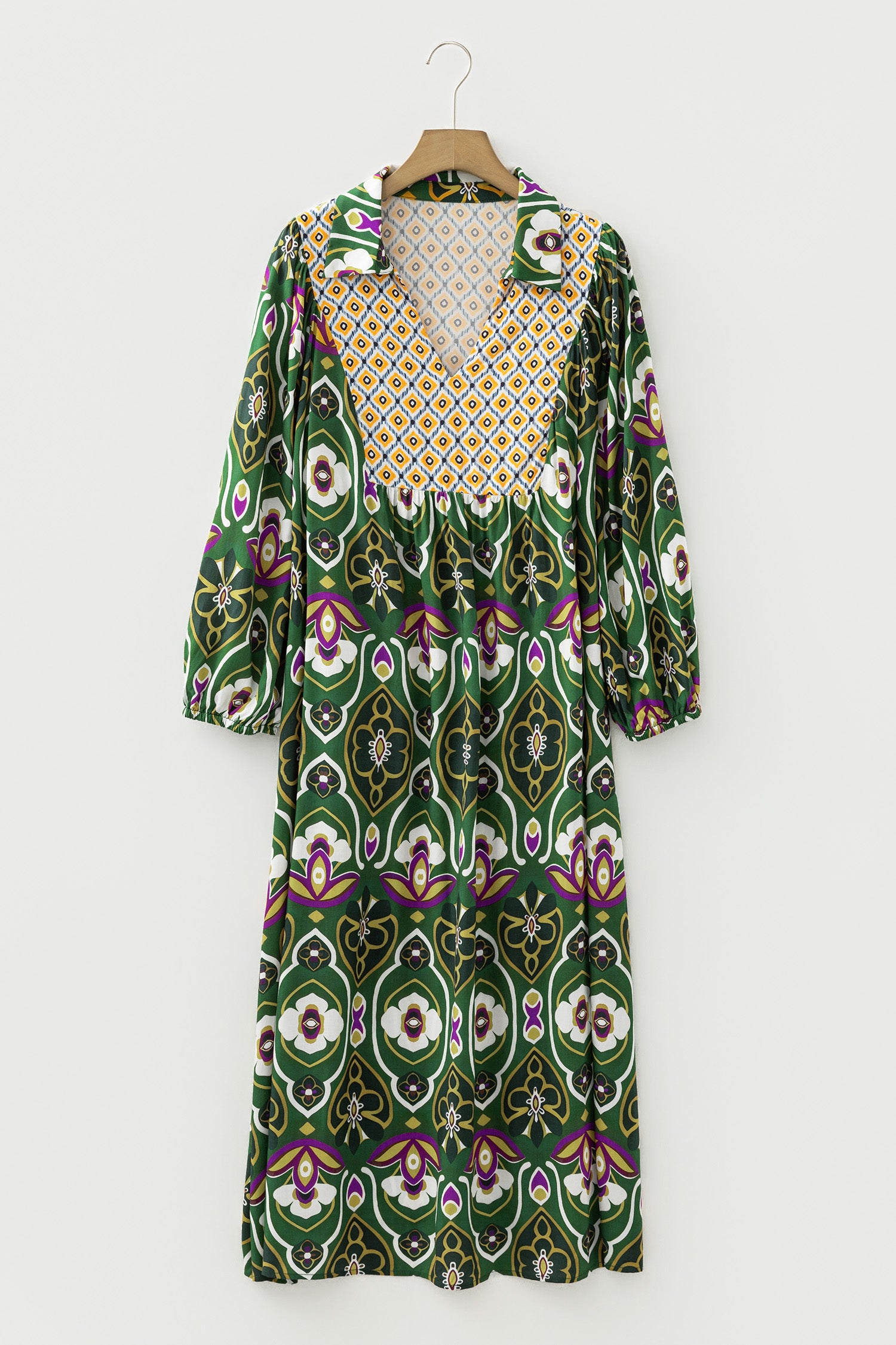Green Plus Size Mixed Floral Patchwork V Neck Bracelet Sleeve Maxi Dress