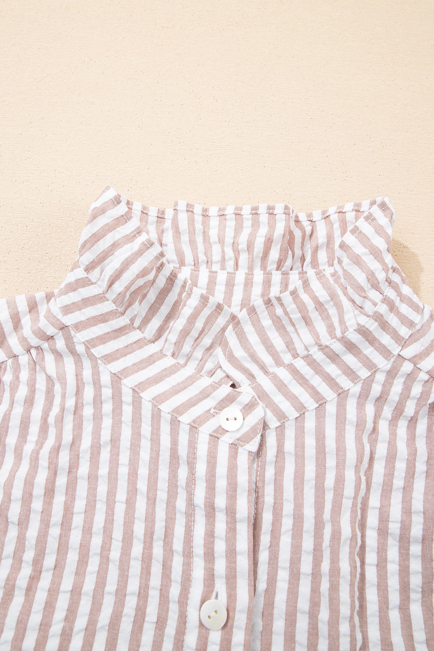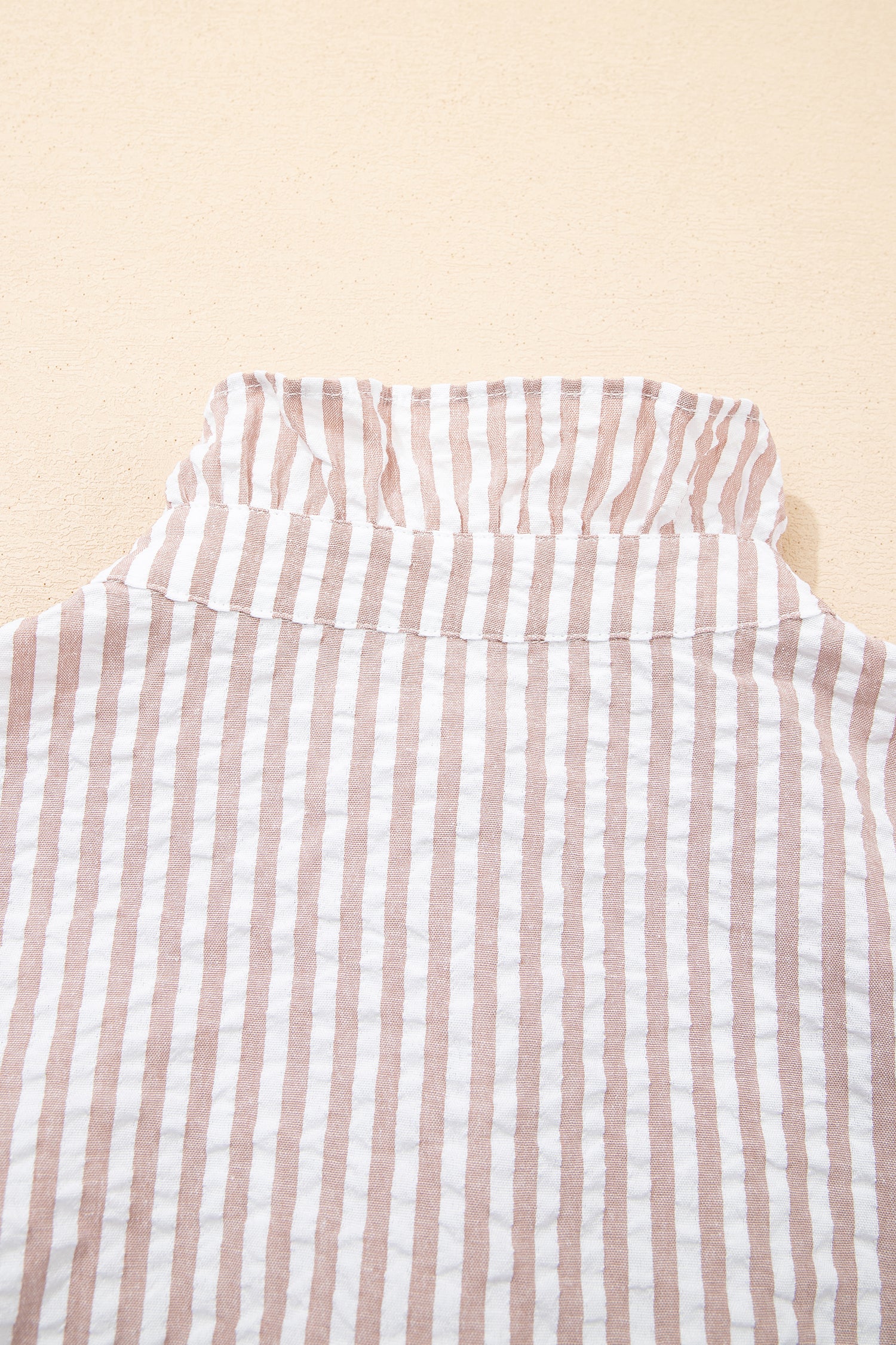 Khaki Stripe Frilled Collar Half Sleeve Shirt Maxi Dress
