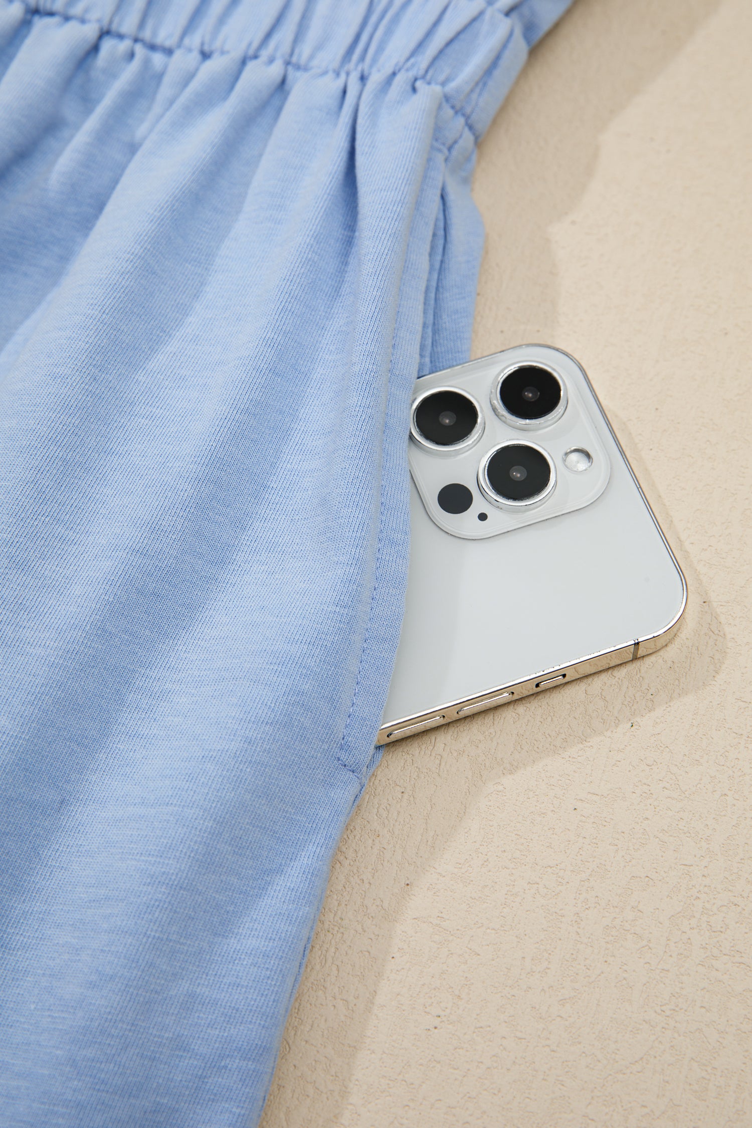Sky Blue Mineral Wash Elastic Waist Tank Dress with Side Pockets