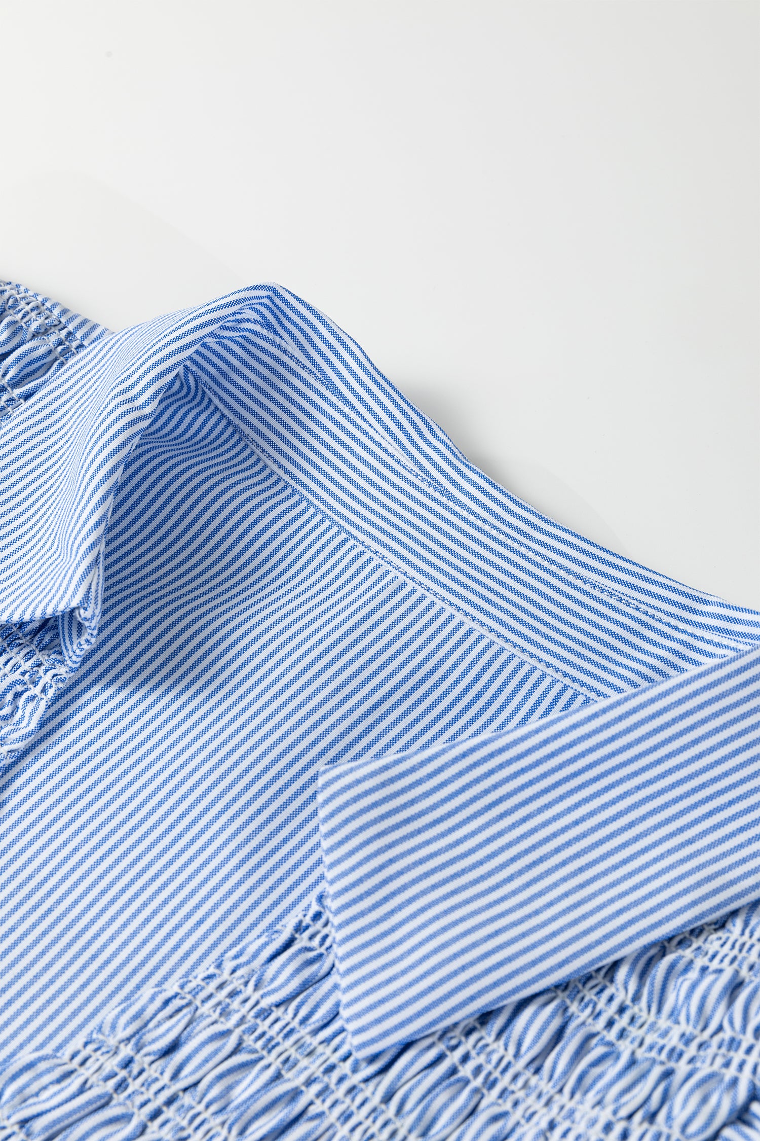 Sky Blue Stripe Shirred Detail Collar V Neck Plus Size Midi Dress
